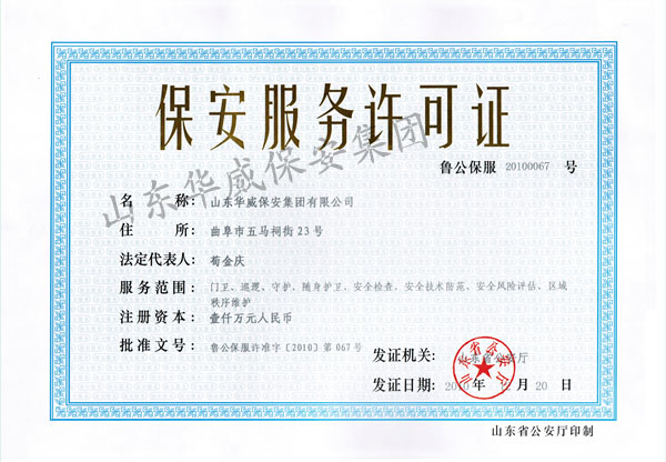 保安服務行業(yè)資質(zhì)證書