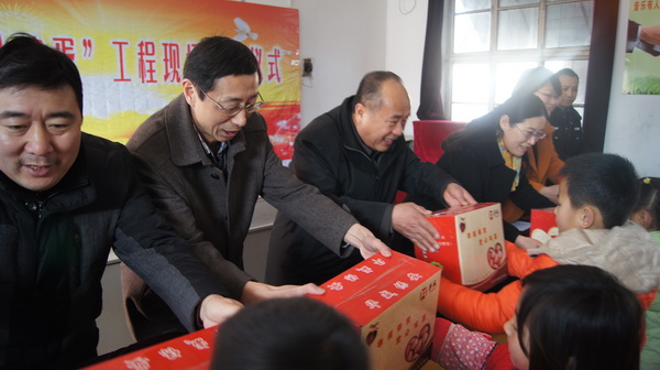 “愛心雞蛋工程”是由集團董事長、總裁荀金慶于2010年發起的一項獻愛心工程,旨在踐行社會責任、關愛兒童成長,提倡讓孩子們每天能吃上一個雞蛋,使孩子們能夠健康成長。同時,通過此項活動的開展,培養華威廣大員工關愛社會,關心他人,回報社會的無私奉獻精神。“愛心雞蛋工程”活動開展四年來,廣大華威員工積極響應、踴躍參與,每個月都從自己不太多的工資中,拿出至少一元錢,奉獻自己的愛心,錢看起來不算多,但華威人就這樣日復一日,年復一年的堅持不懈。四年來,全體員工共向愛心雞蛋工程捐款十萬余元,用來購買愛心雞蛋,先后向南辛、吳村、王莊、石門山、防山及息陬六個鎮的50所學校的2000多名小學一年級的孩子們送去了愛心雞蛋,并從中選出十名貧困家庭的兒童進行長期資助。雞蛋雖然不多,但卻代表了華威全體員工的一片真誠的愛心。