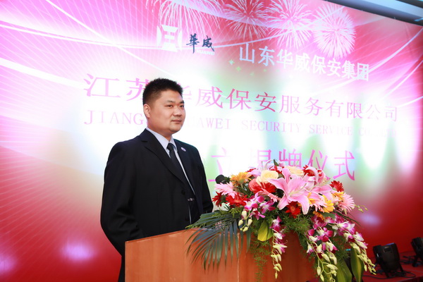山東華威保安集團董事長、總裁荀金慶致辭,向多年來關心支持集團公司發展的各級領導和社會各屆人士表示衷心感謝。簡要介紹了公司的發展歷程,并對下步工作提出了希望和要求。他表示:“集團公司在南京成立江蘇華威公司,是為了更好的開發江蘇地區安保業務,滿足長三角地區新市場的需求,是深入貫徹集團“高端發展、轉型升級”及“走出去”戰略的又一有力舉措,江蘇公司的成立代表著華威進軍華東市場道路上又邁出了一大步。成立后的江蘇公司將借助長三角經濟帶這一新環境,采取更加符合開展地域特點的人事、用工、分配、管理新機制,形成更加有利于公司業務開拓的內部環境和運營機制,依法經營、誠信經營,為客戶提供更加專業、高效的安保服務,打響來至齊魯大地、東方圣城的華威保安品牌。”