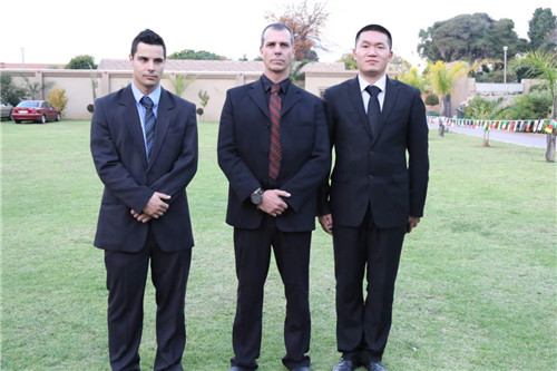 南非華威雷德保安公司承擔(dān)了孫副省長一行的安保護衛(wèi)工作,派出三名特保人員對孫副省長的訪問進行了全程護衛(wèi)。25日上午,孫副省長一行到非洲(中國)生產(chǎn)資料展覽中心進行視察,并與商會人員及部分山東省駐南非企業(yè)負責(zé)人進行溝通交流。集團公司總裁助理、國際合作中心主任孔令東應(yīng)邀參加座談,并就華威集團國際化戰(zhàn)略、南非分公司發(fā)展情況向?qū)O副省長及代表團成員進行了匯報,代表團對華威作為第一家走出國門的山東省的保安公司表示祝賀,同時,也希望華威能夠發(fā)揮優(yōu)勢,做好中國在南非投資的中資企業(yè)和家鄉(xiāng)企業(yè)的安全保衛(wèi)工作,為家鄉(xiāng)的發(fā)展做出貢獻,為山東爭光,為中國爭光。
