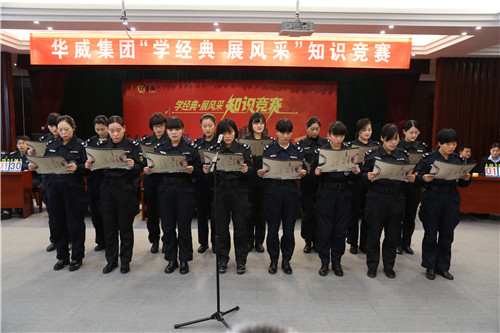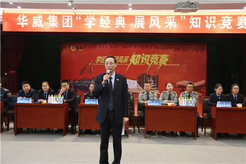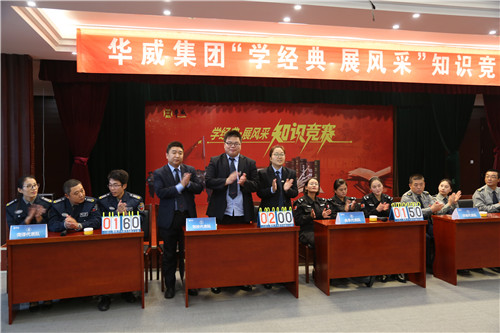 值十九大召開之際,10月21日上午,山東華威保安集團“學(xué)經(jīng)典、展風(fēng)采”知識競賽在集團總部會議大廳隆重舉行。通過層層選拔,來自華威集團旗下30個分公司的隊員,共12支代表隊,36名選手參加了比賽。特約點評嘉賓市教體局房立禎老師,荀金慶、李曉虎、顏承國、姚彥偉等集團領(lǐng)導(dǎo)參加活動。黨總支副書記李曉虎致辭,董事長、總裁荀金慶賽后總結(jié)比賽并對下一步華威企業(yè)文化的建設(shè)提出了意見。