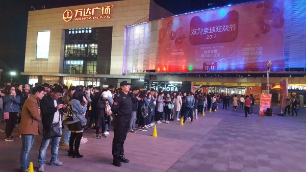 雙11期間天貓科技公司舉辦的“捉黃金貓,領現金紅包”活動在建鄴萬達廣場如期舉辦,活動共吸引了5000余人參加。此次活動全程由江蘇華威保安公司派出的特保保駕護航。
