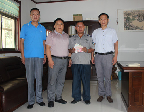 2016年7月23日上午,犬業(yè)公司在利用召開(kāi)半年總結(jié)會(huì)議之際對(duì)保安員孔慶祿家庭進(jìn)行了愛(ài)心捐款儀式。