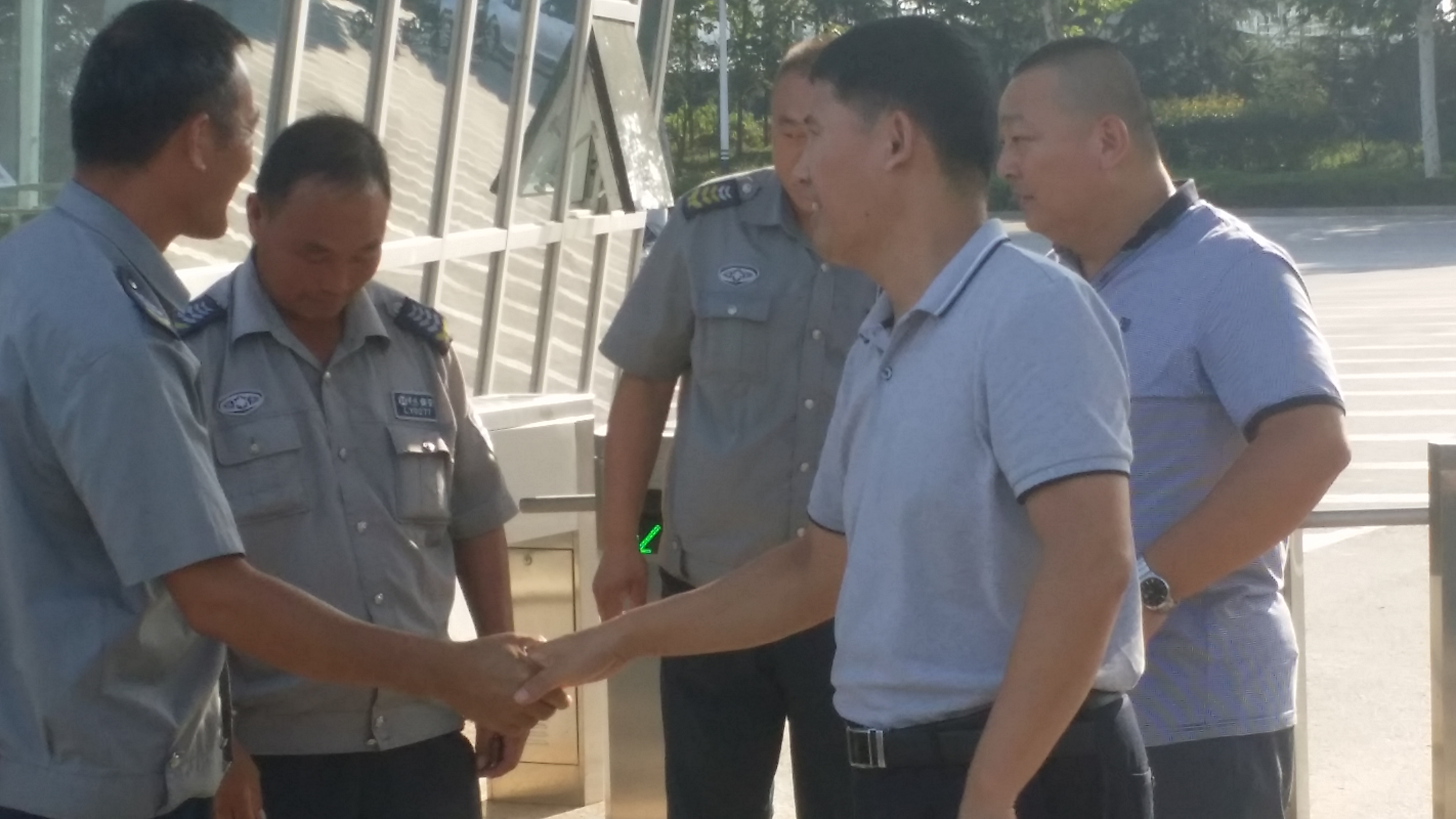 集團公司監事會主席孫凡華、培訓中心副主任張濤于8月30日下午到臨沂分公司檢查指導工作。孫主席在分公司總經理孔德生的陪同下先后到臨沂金華奧迪4S店、臨沂眾泰汽車制造有限公司保安項目部看望一線執勤保安隊員。