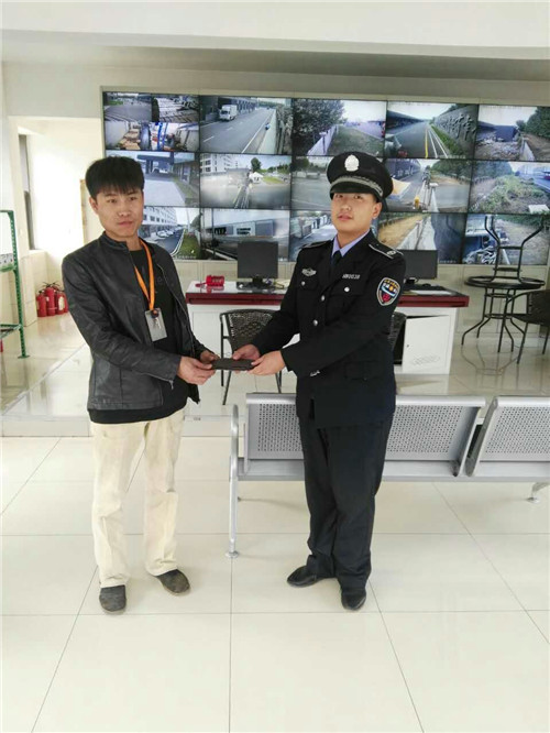 101521點,北京分公司駐天津雅迪實業有限公司項目部保安員桑澤銳在執勤時撿到一個錢包,內有身份證、銀行卡、信用卡、購物卡以及800多元現金。