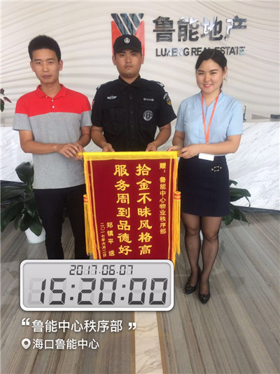 6月2日晚20時,曲阜分公司駐海南魯能中心項目部保安員孔令壯,夜間巡邏時撿到現金若干,在附近未找到失主,便將錢交至秩序主管處,后通過監控設備查找到失主鄭先生。鄭先生...