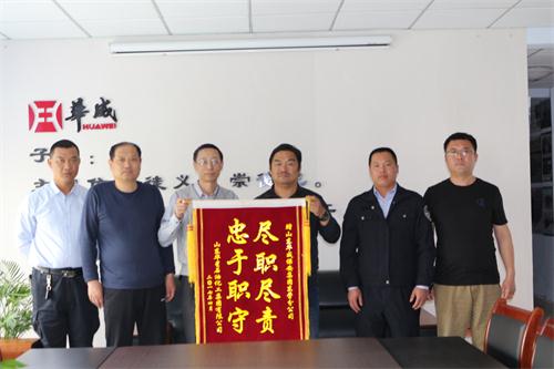 4月19日,東營分公司收到客戶“山東華星石油化工集團有限公司”錦旗一面,錦旗上“忠于職守,盡職盡責”8個大字熠熠生輝,這8個字不僅是對華威保安的肯定,更是對駐華星門...