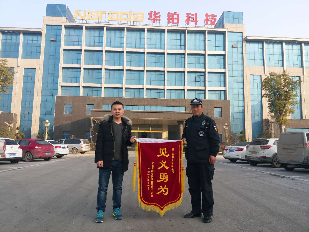 山東華威保安集團菏澤分公司駐安徽華鉑再生資源科技有限公司項目部保安隊員王金輝,于11月25日晚8時左右,在華鉑公司一號門執勤時發現門外有一輛載有電池的白色半掛車(皖K...
