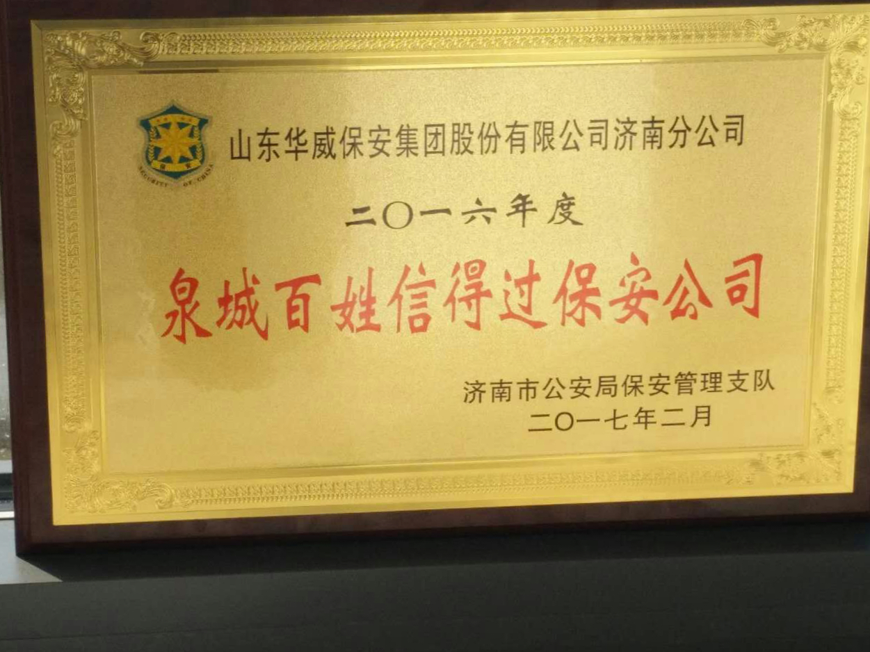 濟南分公司連續兩年獲得“泉城百姓信得過保安公司”...