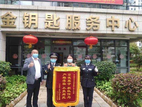 3月14日,文昌淇水灣伍號項目業主代表為保安隊員符方洪、羅香梅送來錦旗,對全體保安員在園區防疫管控期間堅守崗位、履職盡責、嚴防死守、保護家園表示了衷心感謝。